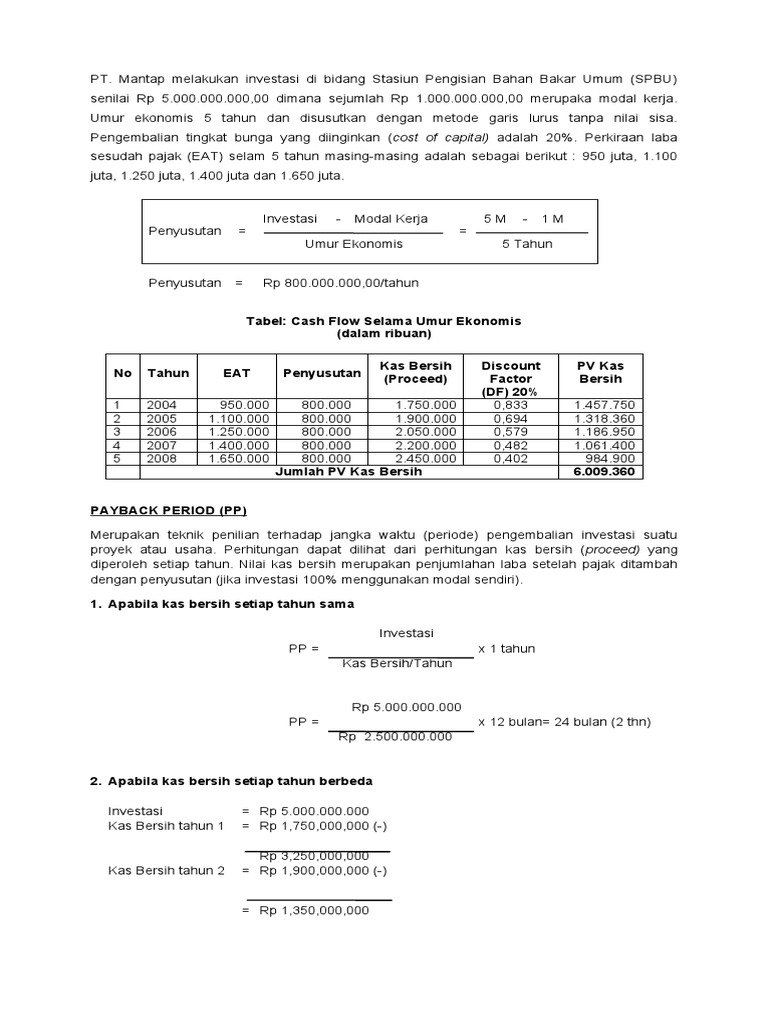 Dari uraian di atas telah disebutkan, sementara metode periode pengembalian mempunyai keuntungan akan tetapi juga kelemahan yaitu :. Metode ini sering pula disebut dengan istilah lain seperti payoff method dan pay out method. Net present value (npv) merupakan manfaat bersih tambahan (nilai kini bersih) yang diterima bisnis selama umur proyek pada tingkat.